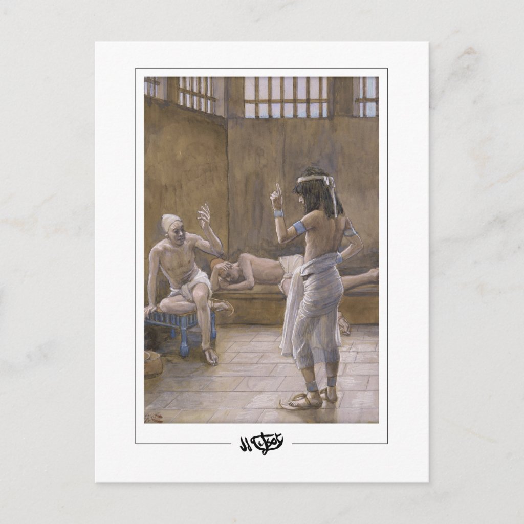 Joseph Interprets The Dreams While In Prison - James Tissot Fine Art Postcard