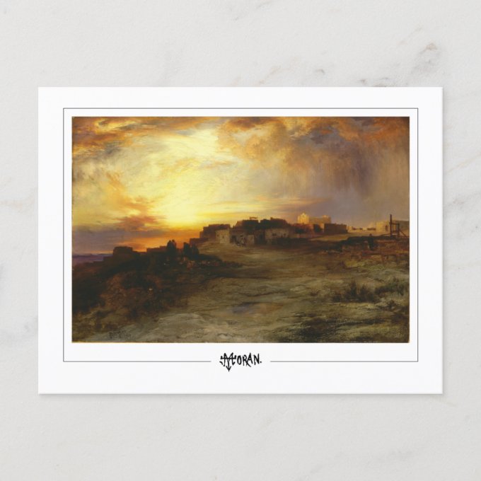 Pueblo At Sunset 1901 - Thomas Moran Fine Art Postcard